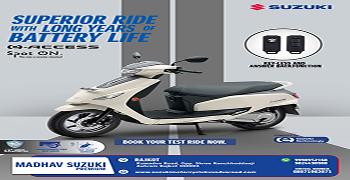 Established in 2022, MADHAV SUZUKI, Kothariya Road is one of the most well-known and trusted Suzuki Bike Showroom in Rajkot- Kuvadwa Road,. MADHAV SUZUKI is an authorised Suzuki Motorcycle Dealer with a state-of-the-art showroom where you can check out the new Avenis,take it out for a test ride, and book your dream ride. On our website, you can explore the entire range of two-wheelers by Suzuki Motorcycles. You can also find out the ex-showroom price of different variants, calculate EMI, get a callback, and even book a suitable time slot for a test ride. Check out your favourite Suzuki motorcycles and scooters conveniently, with the easy-to-use filters to simplify your search. MADHAV SUZUKI offers the entire range of Suzuki Motorcycles, Big Bikes, and Scooters in the Avenis from MADHAV SUZUKI,check out its features, take it for a ride, get a quote, and book your favourite bike from the entire range of Suzuki motorcycles and scooters in. At MADHAV SUZUKI, you can also avail two-wheeler finance to buy your favourite ride.